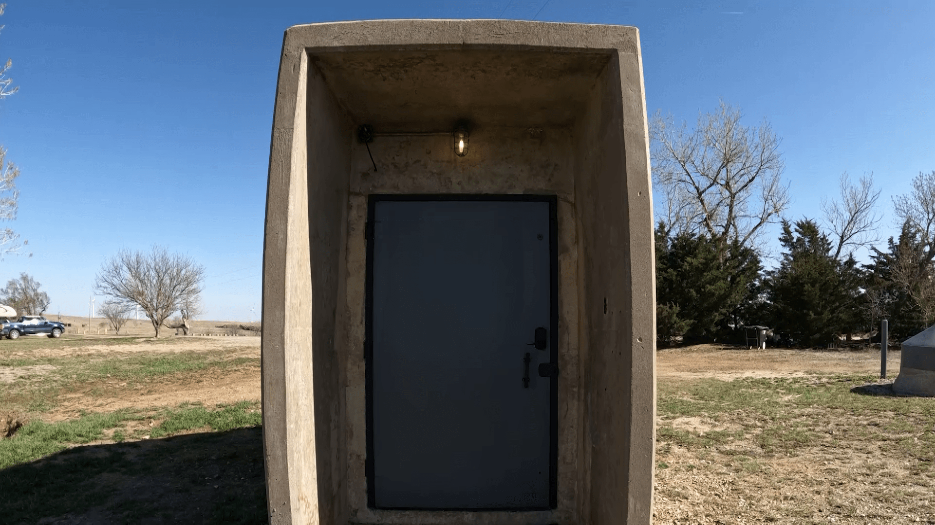 What was once a launch control center and missile maintenance bay has been transformed into a fully functional underground residence. The living quarters feature 2 bedrooms, 1 bathroom, a full kitchen, and a green room — all within the original reinforced concrete shell.